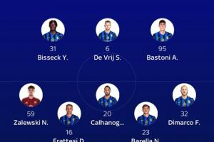 索默/比塞克、德弗里、巴斯托尼/扎莱夫斯基、弗拉泰西、恰尔汗奥卢、巴雷拉、迪马尔科/劳塔罗、阿瑙托维奇